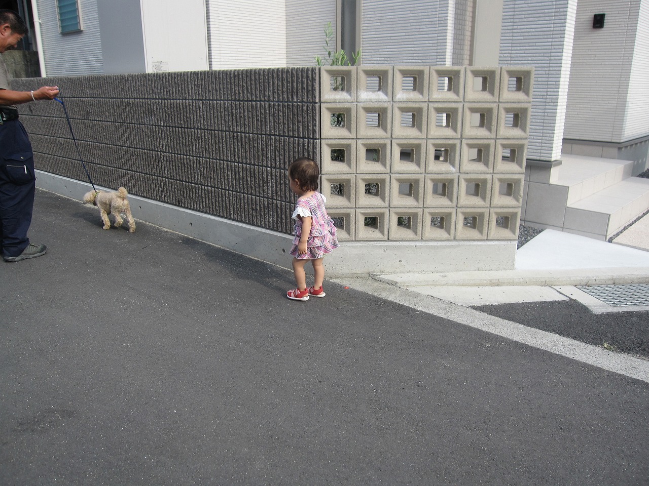 セレモニー待ちの間に、ワンちゃんが散歩で通りかかり・・・