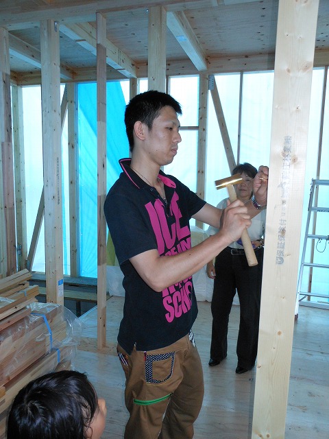 皆さんで釘打ちを行いました
