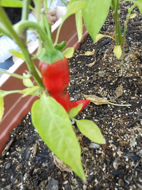 以前植えた唐辛子が真っ赤になっているのを見つけたみたいです