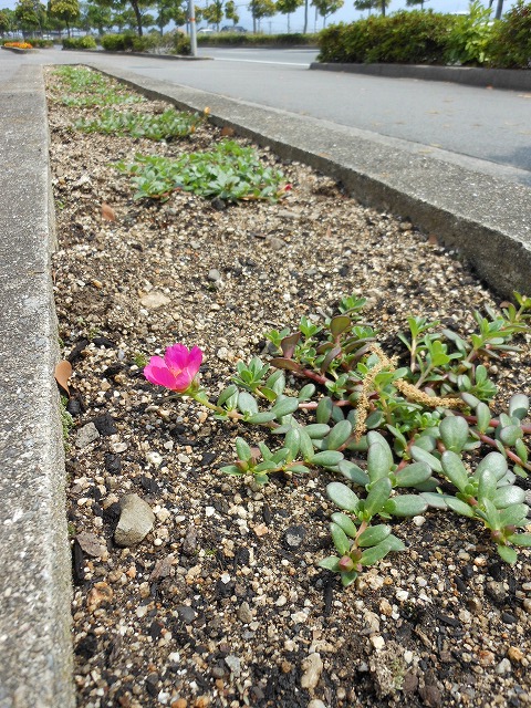 ちょこんと咲いているポーチュラカは