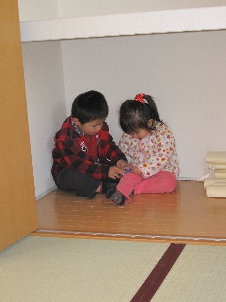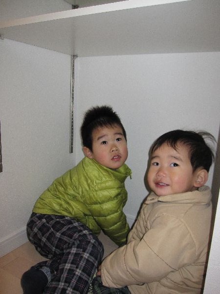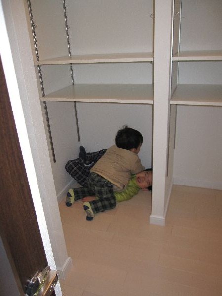 押入れで仲良く遊んでいる