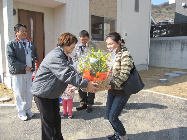 ご主人へ鍵のお渡し&奥さんへ花のプレゼント