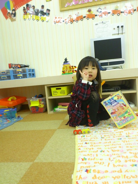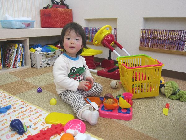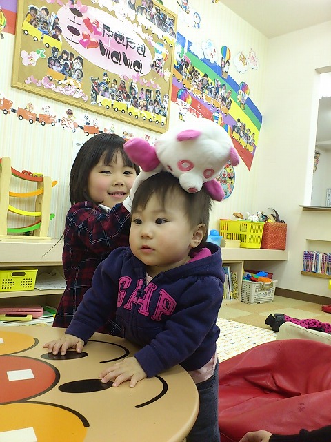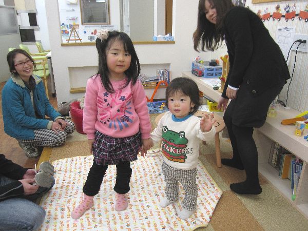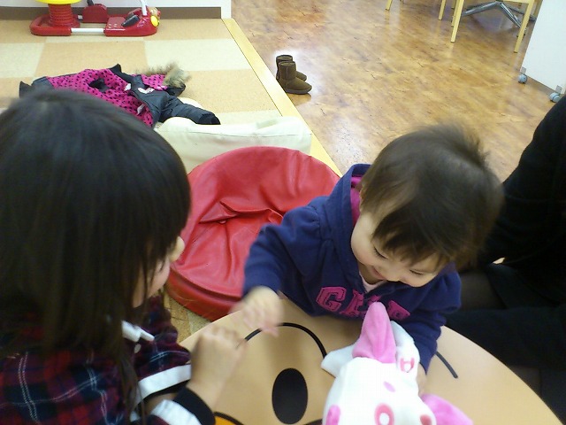 お話の間、仲良く遊ぶかのんちゃんと、りくくん
