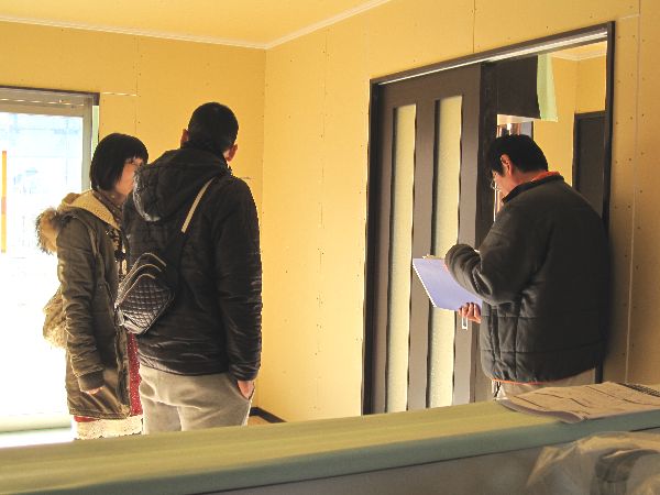 一緒に扉や窓の位置、色の確認などをしました