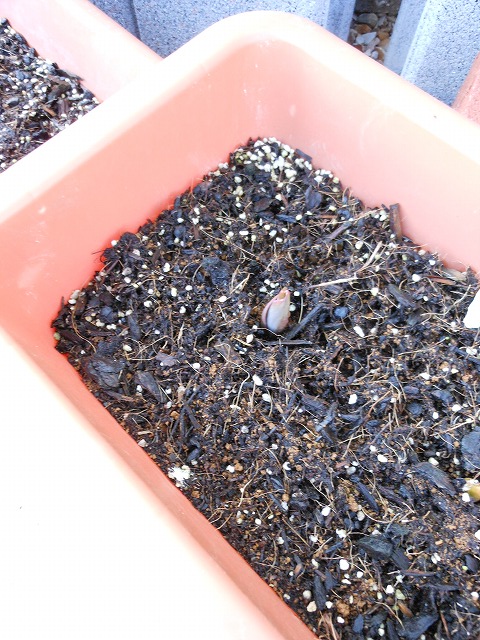 チューリップも ちょこんっ と芽を出していました