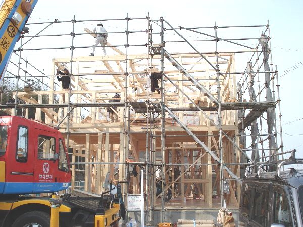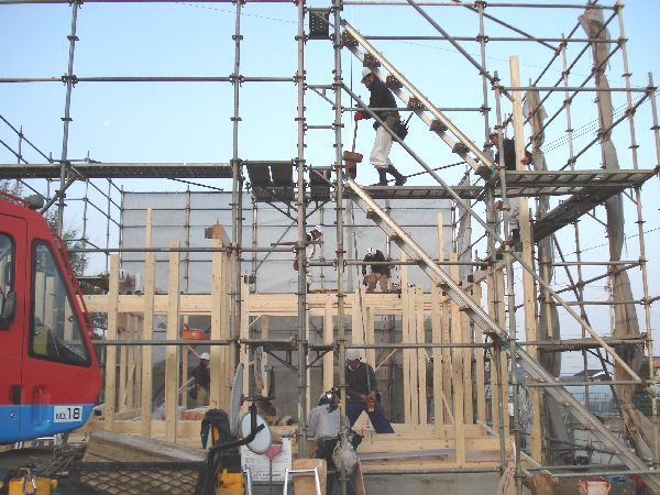 寒い中でしたが、大工さんのチームワークによってどんどん