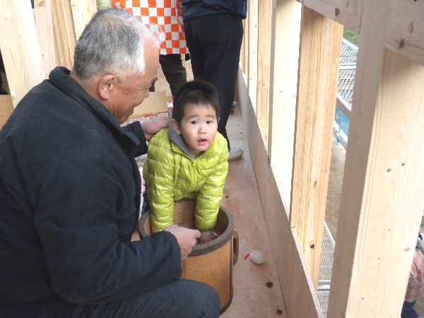 後ろのほうにいた私のところには、お餅は飛んできませんでした