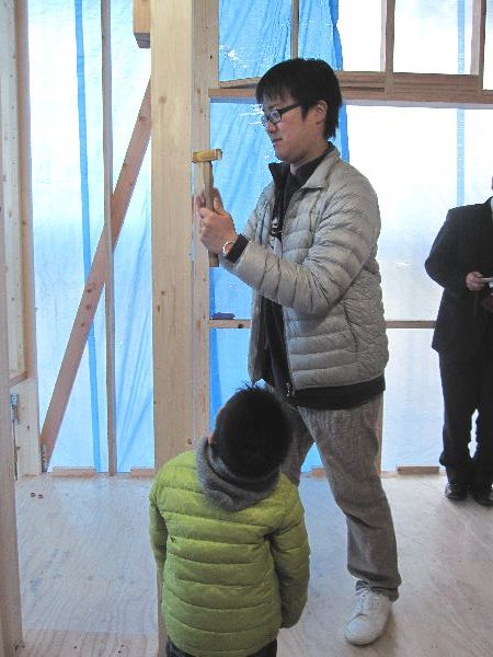 釘打ちはご家族皆さんで