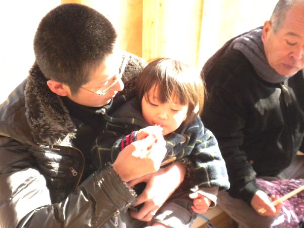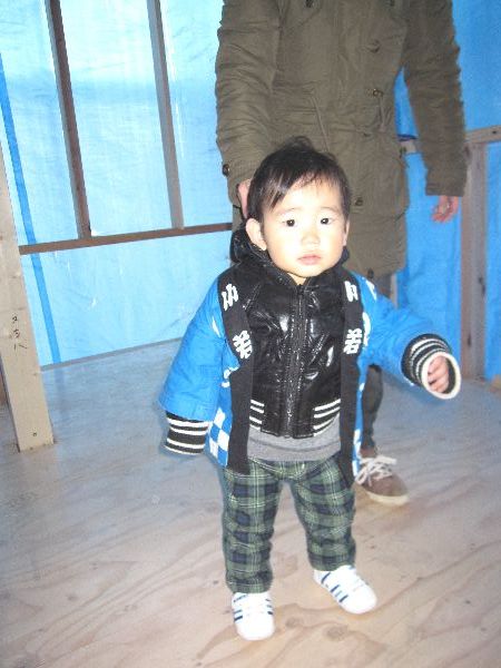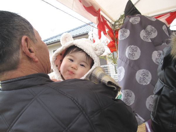 寒い中の地鎮祭でしたが、さらちゃんとるかちゃんも