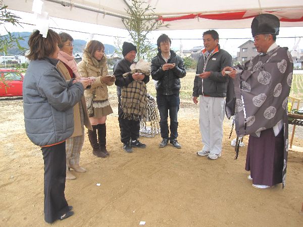 みんなで工事の安全と、良いお家が建つようにお祈りしました