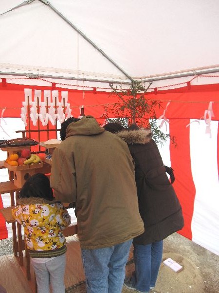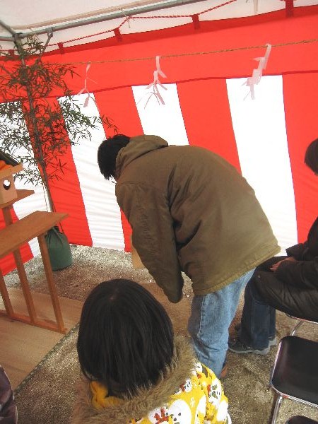 みんなで工事の安全と、いいお家が建つようにお祈り