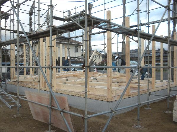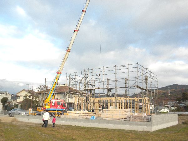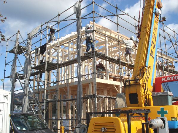 大工さんのチームワークによって、あっという間にお家が