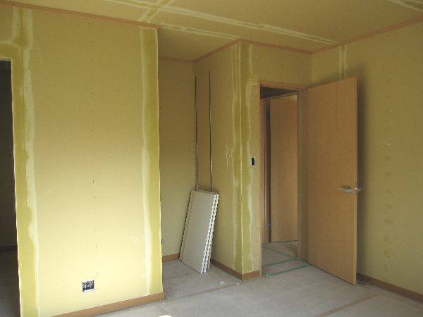木完検査も終わり、クロスを貼る工事に入り、