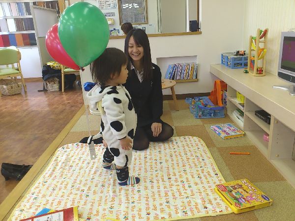 はなちゃんは、風船で遊んだり、ピアノを弾いたりしました