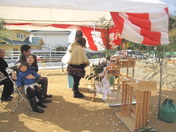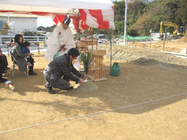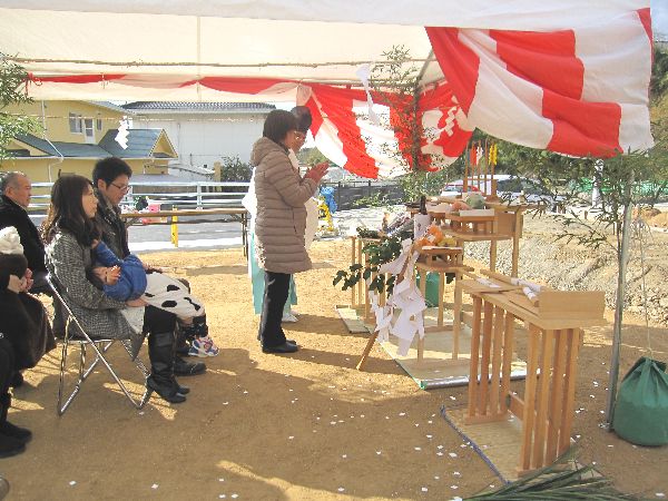 ご両親も来て下さり、賑やかな地鎮祭でした