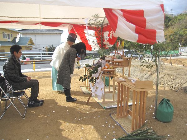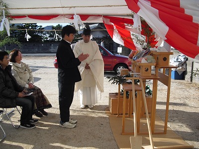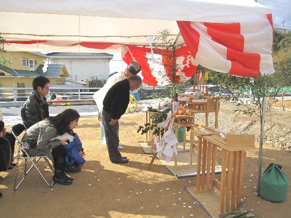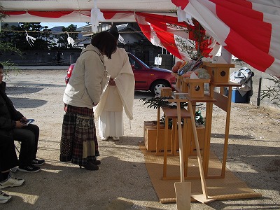土地の神様に工事の無事をお祈りをしました