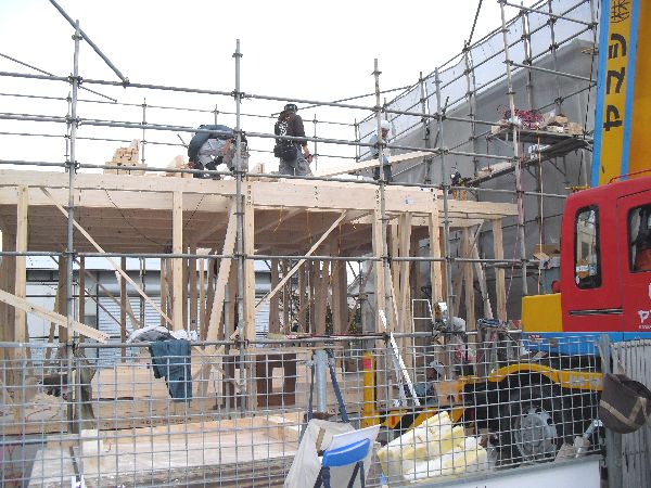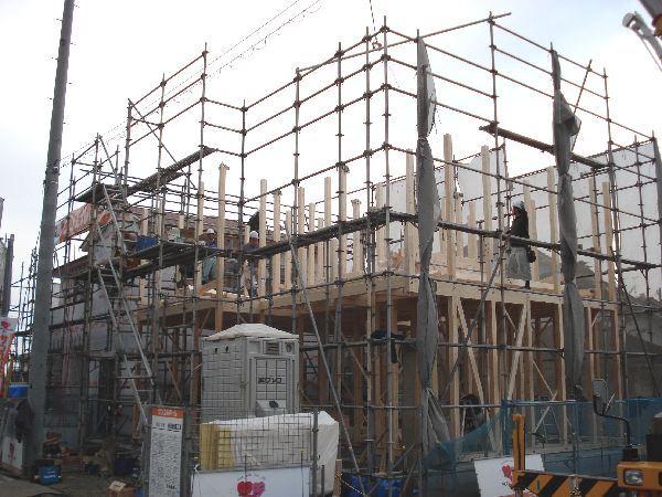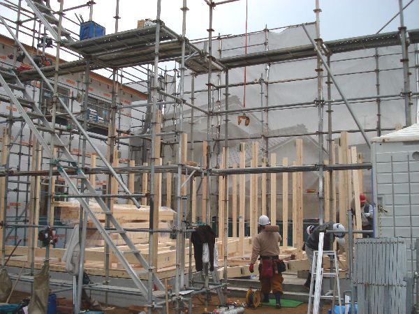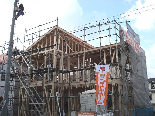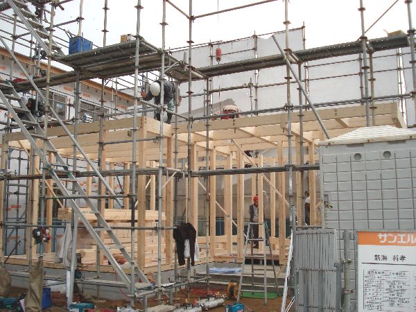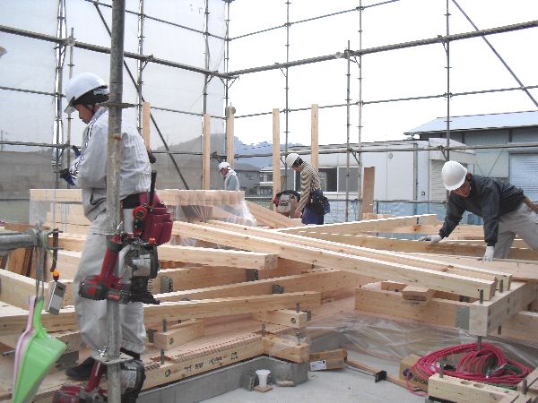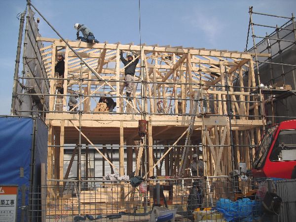 大工さんのチームワークによってどんどん出来上がるお家