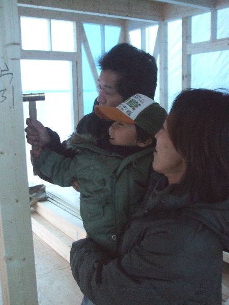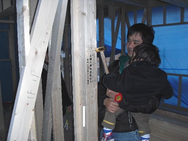 祐くんの釘もパパが打ったよ