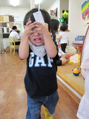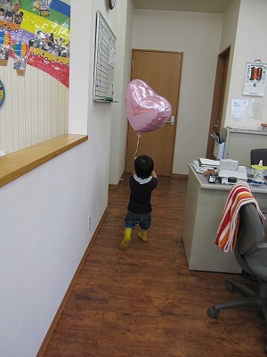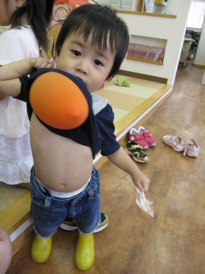 」いつも風船を服の中に隠して遊んでいるれおくんです
