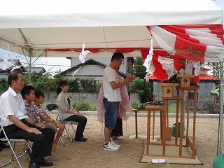 地鎮祭中は、雨も降らず良いお天気でした
