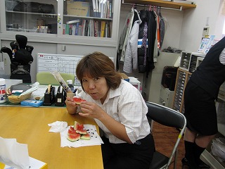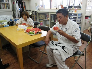 今日はメンバーみんなでスイカを食べました