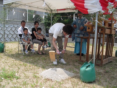 ご主人による鍬入れの様子