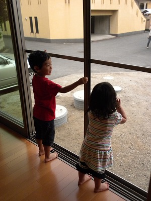 準備の間、竹とんぼで遊んでいました