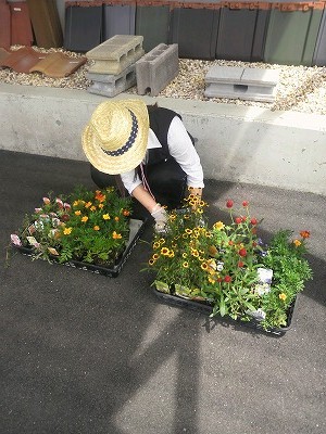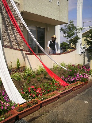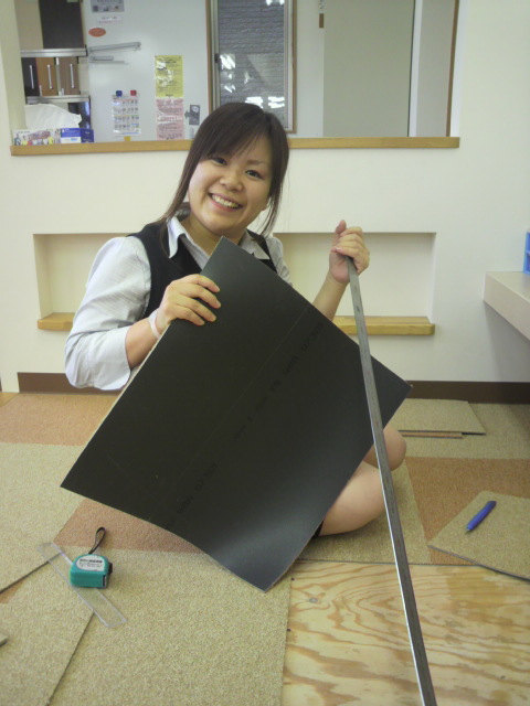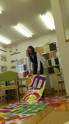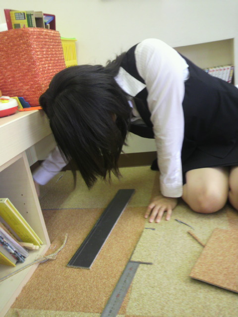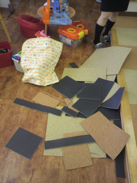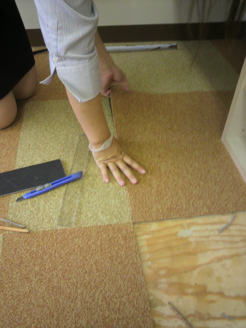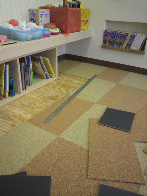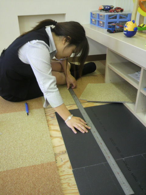 今日はキッズスペースのマットを中川さんと新しいものに変えました