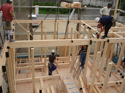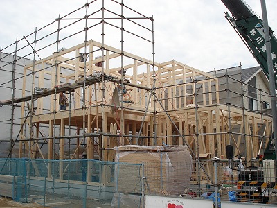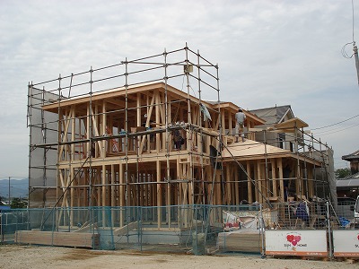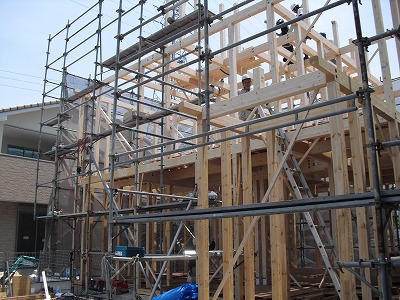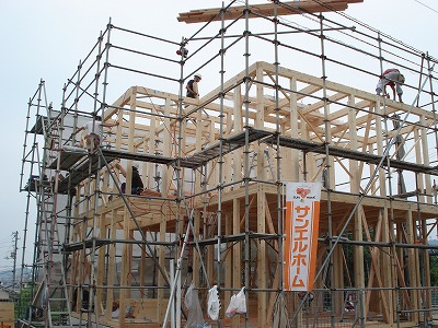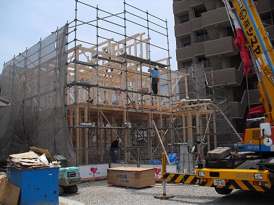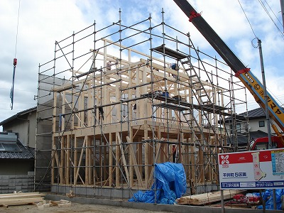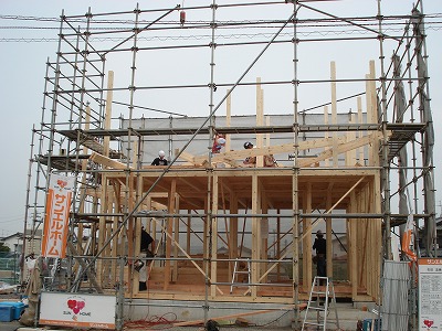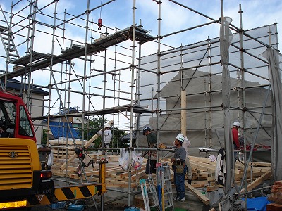 で上棟が延期になっていましたがこの日は良いお天気に恵まれました
