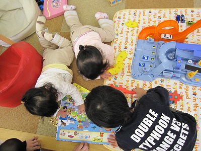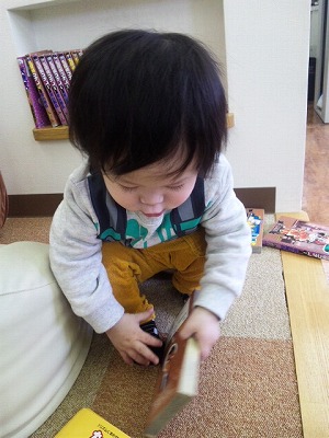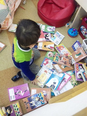 本を逆さにして読んでいました・・・かわいい
