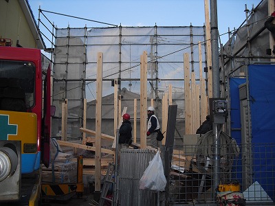 最初は1本1本柱がたっていき、まだまだ形は分かりませんが