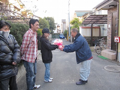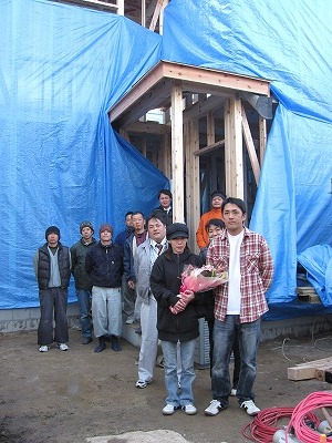 N様邸をつくってくれる渡辺棟梁よりお花をお渡ししました