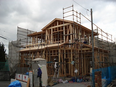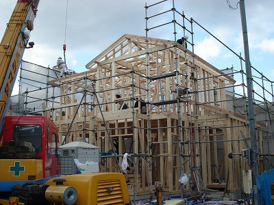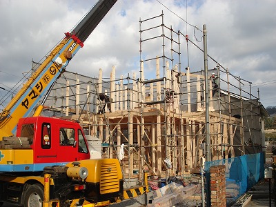 建築現場では、藤岡棟梁がお家をつくってくれていますので