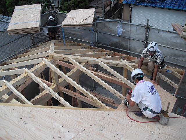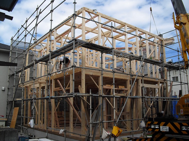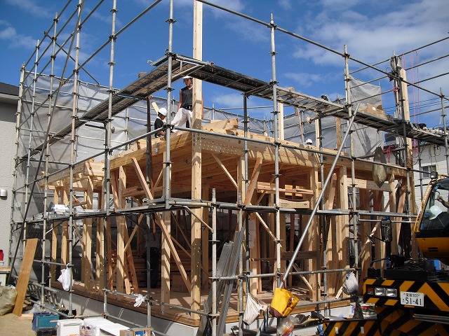 雨ひとつ降ることなく、上棟を行うことが出来ました