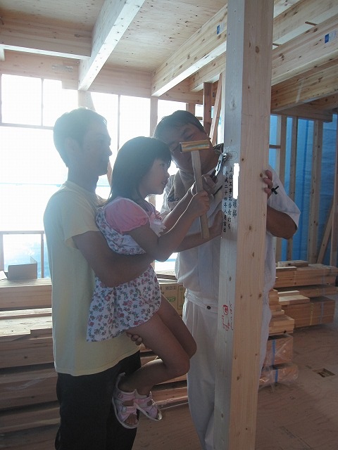 夕方から釘打ちセレモニーを行い上棟工事も無事終了