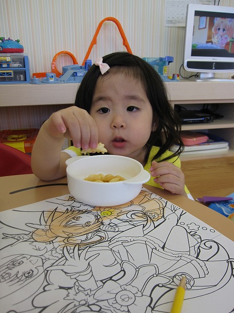 りゅうやくんとりおんちゃんは、塗り絵をしたり