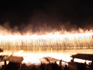 大洲の花火大会には、ナイアガラ花火があり、